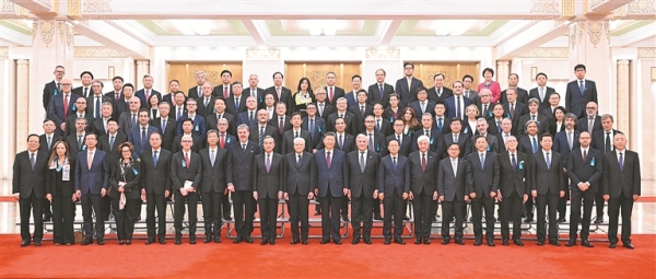 會(huì)見(jiàn)前,兩國(guó)元首同雙方代表合影留念。