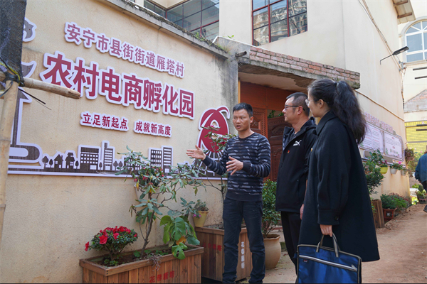 云南省安寧市紀委監委圍繞鄉村振興開展專項監督,加強對重點項目、重大資金、重要環節的監督檢查。圖為近日,該市紀檢監察干部深入縣街街道雁塔村了解農村電商孵化園建設發展情況。聶涵 攝