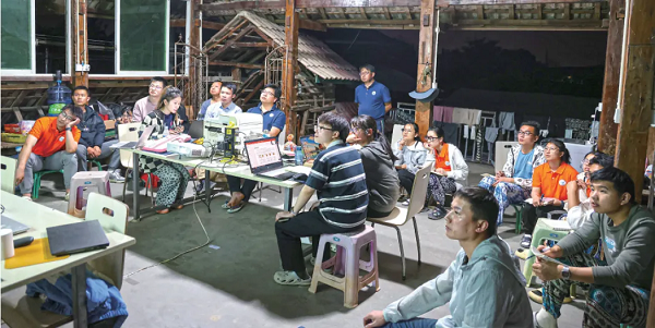 古生村科技小院師生們白天勞動做實驗,晚上進行學術交流。謝銳佳/攝