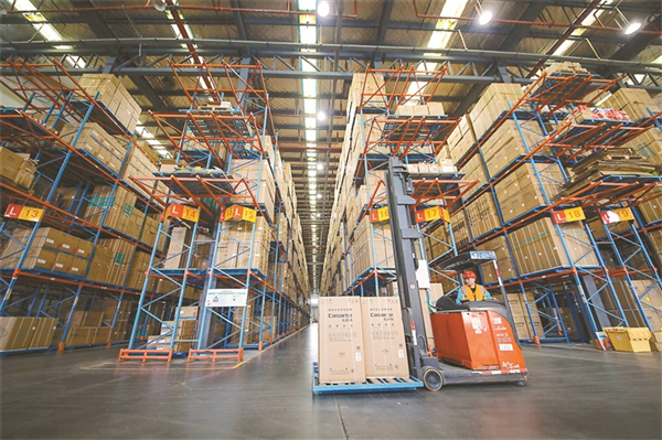 近日,在位于山東省青島市李滄區(qū)世園街道的蘇寧物流中心,叉車工進行出貨作業(yè)。 新華社發(fā)(張鷹 攝)