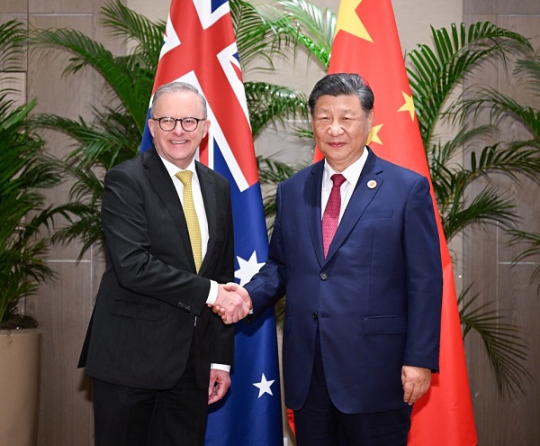習(xí)近平指出,去年11月,我們在北京就事關(guān)中澳關(guān)系長遠發(fā)展的戰(zhàn)略性、全局性、方向性問題進行了深入溝通。一年多來,兩國各層級保持密切溝通交往,積極推進落實我們達成的重要共識,取得積極進展。中澳之間沒有根本利益沖突,只要雙方堅持相互尊重、平等相待、求同存異,中澳關(guān)系就一定能夠發(fā)展好。中方愿同澳方一道,推動建設(shè)更加成熟穩(wěn)定、更加富有成果的中澳全面戰(zhàn)略伙伴關(guān)系,為地區(qū)和世界注入更多穩(wěn)定性和確定性。