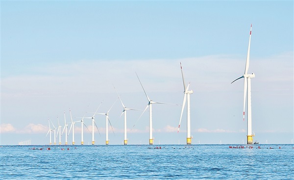 遼寧省大連莊河海上風電20萬千瓦項目實現該省“平價”海上風電“零”的突破。新華社記者 楊青 攝