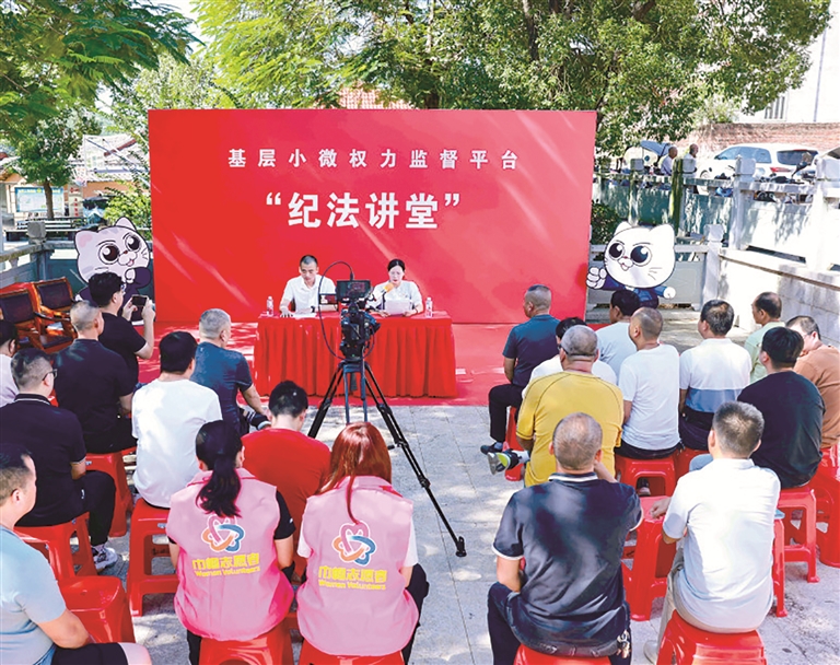 福建省南安市紀委監委依托基層小微權力監督平臺搭設鄉村“紀法講堂”送課下鄉,解答基層黨員干部關心的熱點難題,推動黨紀法規教育向基層延伸。圖為近日,該市紀委監委在樂峰鎮開展“紀法講堂”直播活動。趙智聰 攝