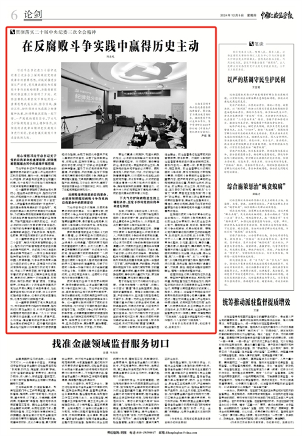 2024年12月5日,《中國紀檢監察報》刊發云南省委常委、省紀委書記、省監委主任馮志禮署名文章:《在反腐敗斗爭實踐中贏得歷史主動》。