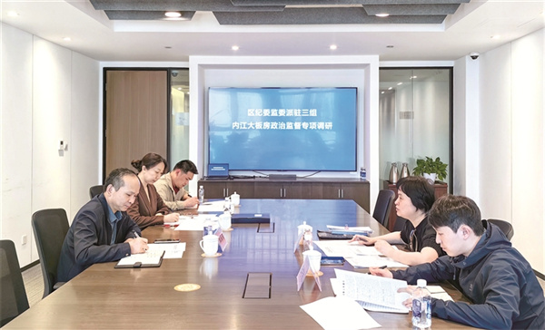上海市楊浦區(qū)紀(jì)委監(jiān)委發(fā)揮“室組地企”協(xié)同聯(lián)動(dòng)優(yōu)勢(shì),聚焦內(nèi)江大板房成套改造項(xiàng)目強(qiáng)化政治監(jiān)督。圖為楊浦區(qū)紀(jì)委監(jiān)委第三派駐紀(jì)檢監(jiān)察組到項(xiàng)目負(fù)責(zé)單位上海衛(wèi)百辛(集團(tuán))有限公司開展專項(xiàng)調(diào)研。董旻 攝