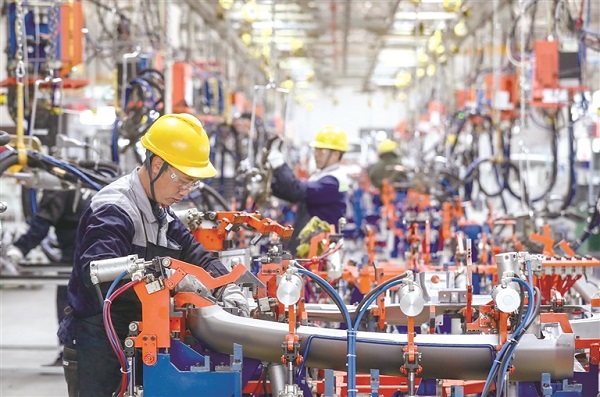 圖為近日,工人在貴州省貴陽市貴安新區(qū)貴州長江汽車有限公司生產(chǎn)車間作業(yè)。 新華社發(fā)(袁福洪 攝)