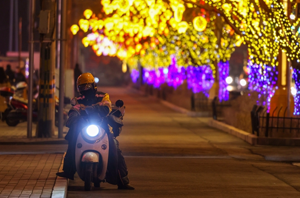 堅守崗位的外賣騎手們為團聚的千家萬戶送去生活便利,他們在街頭巷尾來回穿梭的身影,也成為節日一道溫暖的風景線。(新疆維吾爾自治區庫車市紀委監委 袁歡歡 攝)