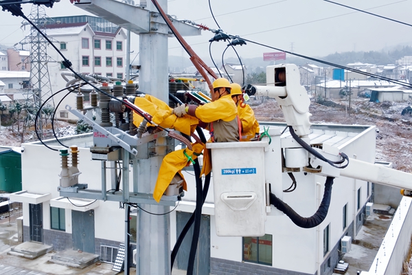 安徽省旌德縣供電公司的工作人員開展不停電作業,以實際行動保障群眾春節期間穩定用電,用兢兢業業守護萬家團圓。(安徽省宣城市旌德縣紀委監委供 宋杰 攝)