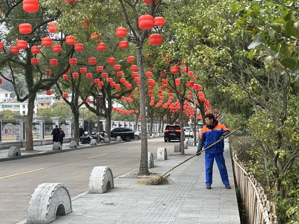 環衛工人在平凡崗位上堅守,把大街打掃得干干凈凈,他們是可敬的城市守護者。(浙江省臺州市椒江區紀委監委供 朱金婷 攝)
