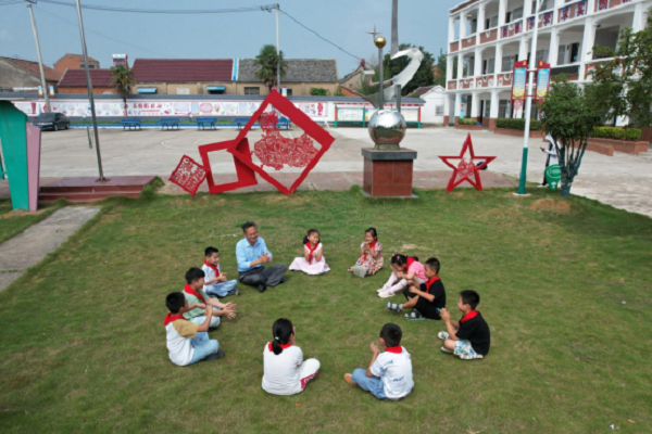 在安徽省滁州市全椒縣管壩民族學(xué)校,老師們扎根偏遠民族地區(qū),為基礎(chǔ)教育和民族團結(jié)奉獻青春和汗水。圖為該校校長許朝斌正在帶領(lǐng)學(xué)生們做游戲。(安徽省滁州市全椒縣紀(jì)委監(jiān)委供 禹強云 攝)