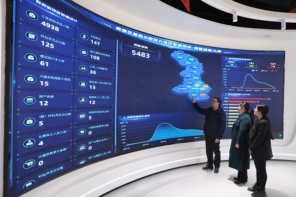 江西省贛州市南康區(qū)紀(jì)委監(jiān)委深化運(yùn)用大數(shù)據(jù)技術(shù),探索建立基層小微權(quán)力運(yùn)行管理系統(tǒng),對資金保障不規(guī)范、月支出異常、資產(chǎn)資源處置不規(guī)范等行為進(jìn)行實(shí)時(shí)預(yù)警。圖為該區(qū)紀(jì)檢監(jiān)察干部正在分析研判預(yù)警信息。(江西省贛州市南康區(qū)紀(jì)委監(jiān)委 鐘彬英攝)
