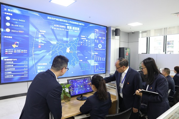 重慶市巴南區(qū)紀(jì)委監(jiān)委把整治群眾身邊不正之風(fēng)和腐敗問題擺在突出位置。圖為巴南區(qū)紀(jì)委監(jiān)委駐區(qū)政府辦公室紀(jì)檢監(jiān)察組工作人員通過服務(wù)群眾工作信息數(shù)據(jù)分析平臺(tái),監(jiān)督政府職能部門及工作人員工作作風(fēng)情況。(重慶市巴南區(qū)紀(jì)委監(jiān)委 文軍 攝)