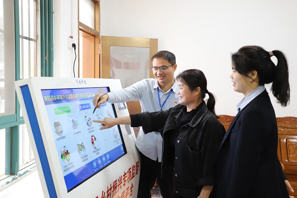 廣西壯族自治區(qū)博白縣紀(jì)委監(jiān)委強(qiáng)化數(shù)字賦能,升級(jí)打造鄉(xiāng)村振興專項(xiàng)監(jiān)督和干部作風(fēng)監(jiān)督平臺(tái),將民生項(xiàng)目、民生政策、民生資金等民生事項(xiàng),以及平臺(tái)操作指南、村級(jí)重大決策流程等一“網(wǎng)”打盡,實(shí)現(xiàn)對“小微權(quán)力”在線監(jiān)督。圖為該縣紀(jì)檢監(jiān)察干部引導(dǎo)群眾查詢了解有關(guān)政策落實(shí)情況。(廣西壯族自治區(qū)博白縣紀(jì)委監(jiān)委 馮明 攝)