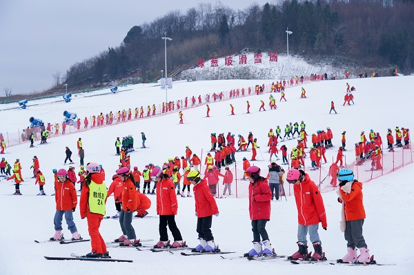 湖北省巴東縣挖掘冰雪資源優(yōu)勢(shì),推動(dòng)冰雪產(chǎn)業(yè)與生態(tài)文化旅游業(yè)深度融合。圖為該縣綠蔥坡滑雪場(chǎng)內(nèi),人們正在體驗(yàn)冰雪運(yùn)動(dòng)的魅力。(湖北省恩施土家族苗族自治州巴東縣紀(jì)委監(jiān)委供 譚平 攝)