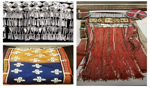 景頗族服飾特點(diǎn)是樸實(shí)厚重、端莊典雅,傳統(tǒng)的景頗族服飾以紅、黑、白三色為主,其他多種顏色為裝飾或輔助色。景頗族男子喜穿白色或黑色對襟圓領(lǐng)上衣、包頭巾,外出時(shí)常佩帶腰刀和筒帕。婦女穿黑色對襟上衣,下著黑紅色織成的統(tǒng)裙,腿上帶裹腿,盛裝還會(huì)配上許多銀飾,沿著衣領(lǐng)的弧線在前胸、后背以及肩上都縫制一圈圈銀泡,銀泡底部墜飾著代表扇子的銀片。