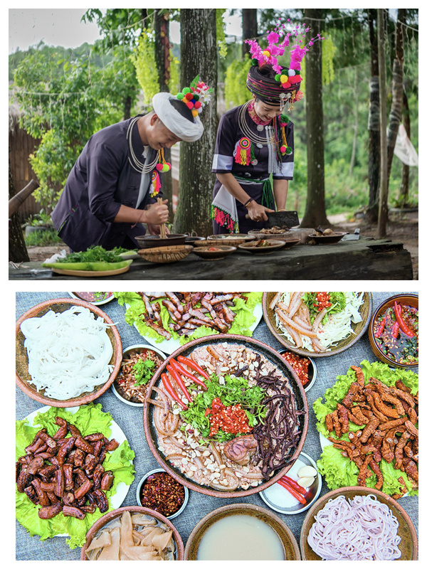 過手米線源于隴川縣戶撒阿昌族鄉,因其吃時需先取一團米線置于手心,將拌料放在米線上用手將加了拌料的米線送入口中食用,故而得名過手米線,又被人們稱為“掌心里的美食”。過手米線是戶撒阿昌族人智慧的結晶,是他們在生產生活中創造出的原生態綠色美食。(段自芬 楊正濤)
