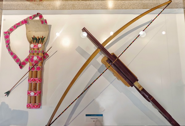 傈僳族展廳展出的弩、箭筒
