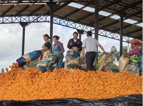 “在鞏固傳統農業的基礎上,我們充分發揮本地資源優勢,采取‘政府搭臺+公司+基地+農戶’的發展模式,積極引進公司與農戶簽訂種植協議,公司為農戶提供種子、種植技術,農戶種出的萬壽菊由公司收購,收購價格隨行就市,有效降低市場風險,最大化保障農戶收益,確保農戶穩定增收。”該縣農業農村和科學技術局相關負責人介紹。