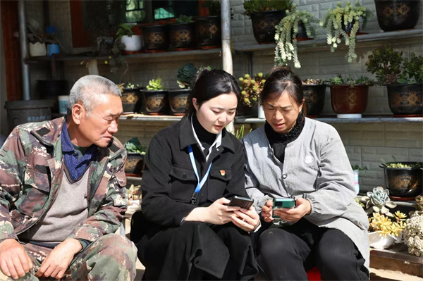 峨山縣紀檢監(jiān)察干部指導群眾使用基層小微權力“監(jiān)督一點通”。(楊蓉 攝)