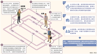 本案中,汪某實(shí)際控制的多家公司在趙某某所在的某銀行和某國投公司都有貸款,并且汪某的公司每個(gè)月都面臨著借新還舊的情況,申請(qǐng)貸款或展期,均需趙某某審核同意,趙某某對(duì)汪某形成了職務(wù)上的制約關(guān)系,因此在2014年上半年趙某某向汪某提出選擇杜某公司為戰(zhàn)略投資企業(yè),以及2019年趙某某讓汪某公司回購杜某公司股份退還投資本息等,汪某均沒有拒絕。而且汪某也表示,杜某的公司屬于可選可不選,就是為了討好趙某某,讓趙某某能夠繼續(xù)幫助解決其公司的融資需求,才選擇杜某公司,也是礙于趙某某的職權(quán)才回購股份,所以趙某某通過汪某為請(qǐng)托人杜某辦事,融入職權(quán)因素,能夠認(rèn)定趙某某利用了職務(wù)上的便利。