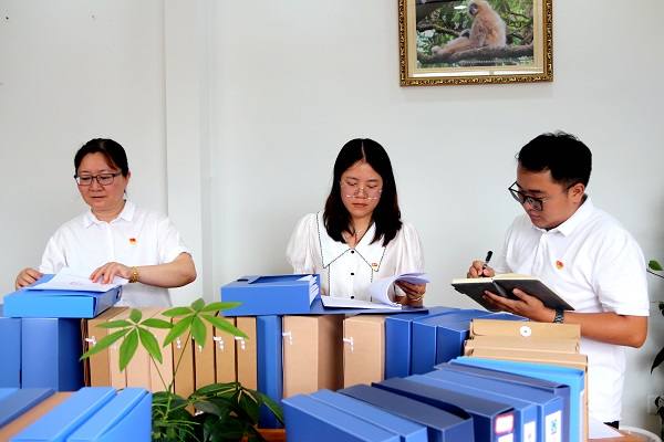 西盟縣紀委監(jiān)委注重提升案件查辦的規(guī)范化、法治化、正規(guī)化水平,在日常工作中,通過集中研討、理論學習、規(guī)范流程等方式,推動各級辦案人員牢固樹立法治意識、程序意識、證據(jù)意識。圖為該縣案件審理室對各鄉(xiāng)鎮(zhèn)紀委案件的規(guī)范性開展指導和評查工作。(娜英 攝)
