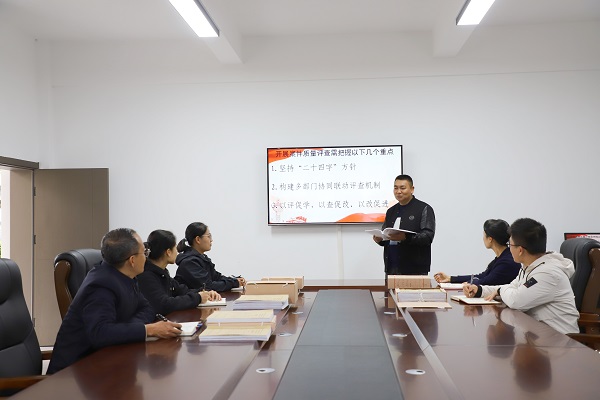 鎮(zhèn)沅縣紀委監(jiān)委以“交叉審理+一案一評”的工作模式,細化評查指標,統(tǒng)一評查尺度,在定期評查過程中,評查組從各方面對全縣自辦案件進行量化評分,對發(fā)現(xiàn)的問題列出“負面清單”,制發(fā)整改通知書,督促逐個對照整改。圖為該縣紀委監(jiān)委案件審理室組織各紀檢監(jiān)察室工作人員對相關案件進行交叉互審。(普紅寧 攝)