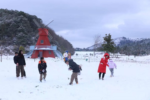 在馬龍區(qū),孩子們?cè)谘┑乩锒蜒┤?、打雪仗,享受冬天的快?lè)時(shí)光。(張玉玲 攝)