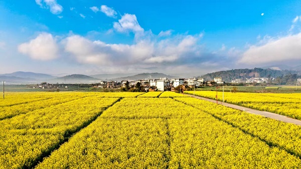 滿目金黃香百里,一方春色醉千山。立春時節,楚雄州牟定縣共和鎮的油菜花競相綻放。(段紹東 攝)