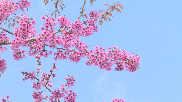 春風送暖,花香四溢。普洱市孟連縣山野里、道路邊一株株櫻花如約盛開,小鳥飛落在枝頭“鬧”春“戲”花,一片生機盎然的景象。(陳永剛 攝)