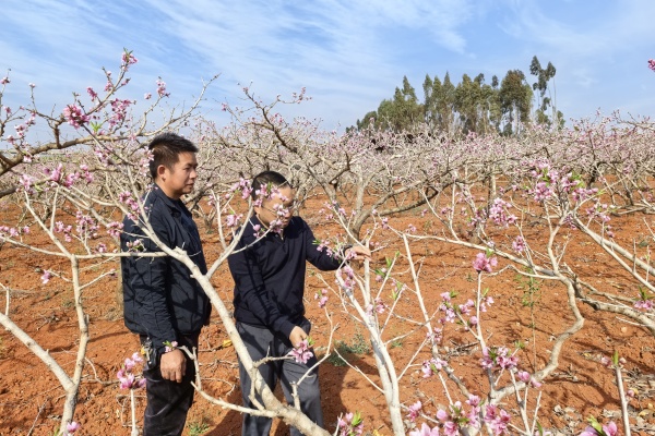 立足職能職責,瀘西縣紀委監委采取“監督+服務”方式,深入基層一線摸情況、聽反映、找問題,督促相關職能部門守好“責任田”,全力護航春耕春種。圖為該縣紀檢監察干部在白水鎮桃園內向群眾了解有關情況。(楊凡 攝)