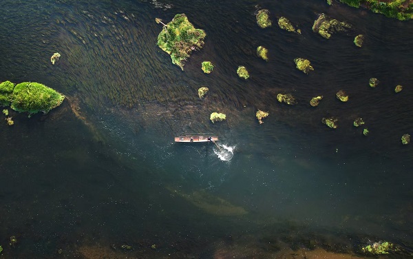 雨絲斜斜掠過西雙版納南臘河面,在青石岸邊敲出細密的漣漪,從扁舟撒出的漁網猶如水墨在宣紙上暈染,錫墜入水時激起的環形波紋與驚蟄特有的雨絲形成雙重漣漪。(陳斌 攝)