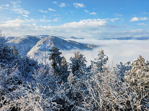驚蟄時節,一場大雪如同冬日最后的告別悄然降臨在維西縣臘八底的群山之巔,將連綿的山巒裝扮得銀裝素裹。云海翻騰的景象,更是將這片土地裝扮得如夢似幻。(余和光 攝)
