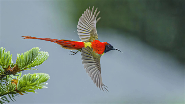草木知四季,鳥蟲感驚蟄。昆明市祿勸縣轎子山上,火尾太陽鳥在林間翩翩起舞,給大地添了幾分生機,也奏響了春天復蘇的樂章。(陸季 攝)
