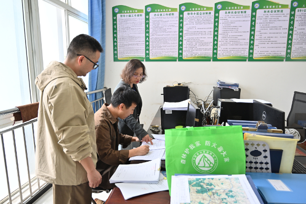 麻栗坡縣紀(jì)委監(jiān)委立足監(jiān)督首要職責(zé),緊盯森林防火工作責(zé)任落實(shí),通過隨機(jī)抽查、突擊檢查等方式,對(duì)職能部門巡防值守、宣傳發(fā)動(dòng)、火源管控、防火物資配備、突發(fā)和應(yīng)急響應(yīng)等情況開展監(jiān)督檢查,壓實(shí)責(zé)任守護(hù)綠水青山。圖為該縣紀(jì)檢監(jiān)察干部在天保鎮(zhèn)林業(yè)站了解有關(guān)情況。(盤天文 攝)