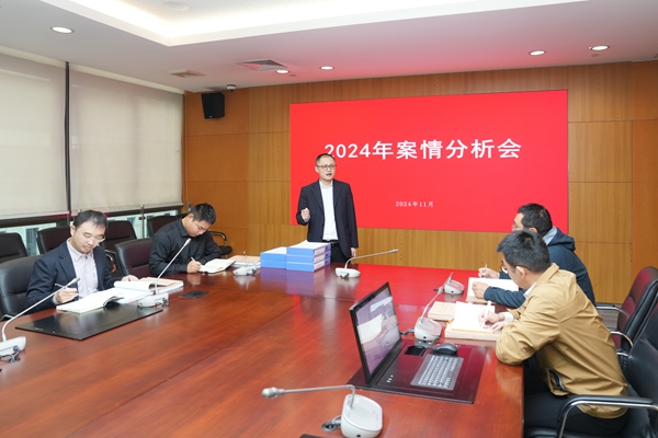 圖為萬健(中)與專案組成員對2024年辦理的案件進行復盤研討、總結得失。孫瀟 攝