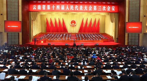 1月18日上午,云南省第十四屆人民代表大會第三次會議在昆明云南海埂會堂隆重開幕。