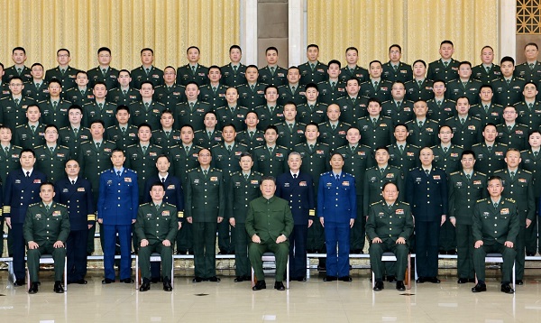 1月24日,中共中央總書記、國家主席、中央軍委主席習(xí)近平到北部戰(zhàn)區(qū)機(jī)關(guān)視察慰問,通過視頻看望基層官兵,檢查部隊(duì)?wèi)?zhàn)備值班和執(zhí)行任務(wù)情況,代表黨中央和中央軍委,向全體人民解放軍指戰(zhàn)員、武警部隊(duì)官兵、軍隊(duì)文職人員、預(yù)備役人員和民兵致以誠摯問候和新春祝福。這是習(xí)近平同北部戰(zhàn)區(qū)官兵代表合影留念。新華社記者 李剛 攝