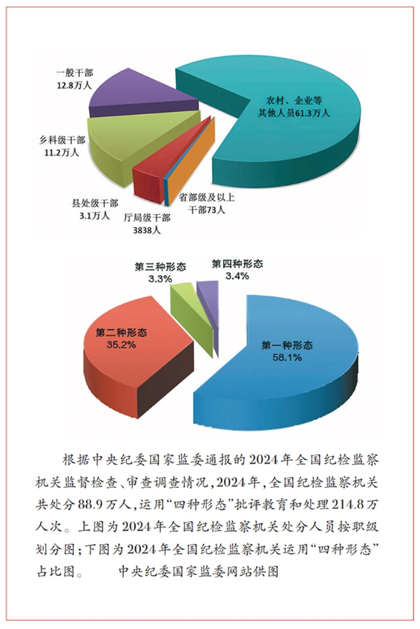 中央紀委國家監委和各級紀檢監察機關堅持以習近平新時代中國特色社會主義思想為指導,堅定擁護“兩個確立”、堅決做到“兩個維護”,圍繞黨和國家中心任務,持續深入強化政治監督、正風肅紀反腐,推動健全全面從嚴治黨體系、完善黨和國家監督體系,鞏固拓展主題教育和教育整頓成果,推動紀檢監察工作高質量發展取得新成效。中央紀委常委會把學習貫徹習近平新時代中國特色社會主義思想特別是習近平總書記關于黨的自我革命的重要思想作為貫穿全年的主題主線,帶動全系統深學細悟黨的創新理論,堅定紀檢監察工作正確方向。健全政治監督具體化、精準化、常態化機制,圍繞黨的二十屆三中全會重大部署謀深做實政治監督,推動黨中央大政方針落地見效。在黨紀學習教育中努力走好“第一方陣”,認真學習領會習近平總書記關于全面加強黨的紀律建設的重要論述,緊扣“六項紀律”逐條學習、深入研討,引領全系統學深一層、熟知善用,推動黨員、干部學紀知紀明紀守紀。持續狠剎享樂主義、奢靡之風,重拳糾治形式主義、官僚主義,以常態長效治理確保貫徹落實中央八項規定精神走深走實。縱深推進反腐敗斗爭,深化拓展金融、國有企業、能源、煙草、醫藥、體育、基建工程和招標投標等重點領域反腐,嚴肅查處政商勾連腐敗,深入查處新型腐敗和隱性腐敗,堅持受賄行賄一起查,深化以案促改促治,有力鏟除腐敗滋生的土壤和條件。開展群眾身邊不正之風和腐敗問題集中整治,以超常規舉措懲治“蠅貪蟻腐”,堅決維護群眾利益,鞏固黨的執政根基。深化政治巡視,對68家部門單位開展常規巡視,首次對金融領域開展聯動巡視、對地級市提級巡視,做實邊巡邊查、立行立改,巡視巡察綜合監督作用進一步彰顯。完善紀檢監察體制機制和法規制度體系,配合全國人大常委會做好監察法修改工作,全面推進數字紀檢監察體系建設,把制度優勢更好轉化為正風肅紀反腐效能。