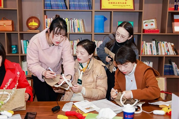 以針為筆,以線為墨,毛線在女同志們戳針尖起舞。伴隨著沙沙的穿刺聲,一個個獨具匠心的戳戳繡手工包新鮮出爐。