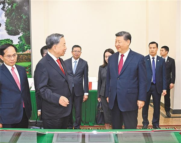 習近平指出,構建中越命運共同體具有重要世界意義。兩國攜手走和平發展道路,15億多人口共同邁向現代化,將有力維護地區乃至世界和平穩定,促進共同發展。兩國都堅持對外開放,為維護地區產業鏈供應鏈穩定暢通、促進經濟全球化發揮了積極作用。小船孤篷經不起驚濤駭浪,同舟共濟方能行穩致遠。中國和越南都是經濟全球化的受益者,要增強戰略定力,共同反對單邊霸凌行徑,維護全球自由貿易體制和產業鏈供應鏈穩定。