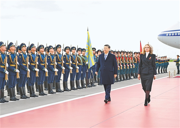 當地時間5月7日晚,國家主席習近平乘專機抵達莫斯科,應俄羅斯總統(tǒng)普京邀請,對俄羅斯進行國事訪問并出席紀念蘇聯(lián)偉大衛(wèi)國戰(zhàn)爭勝利80周年慶典。俄方在機場舉行隆重迎接儀式。這是習近平檢閱儀仗隊。 新華社記者 謝環(huán)馳 攝
