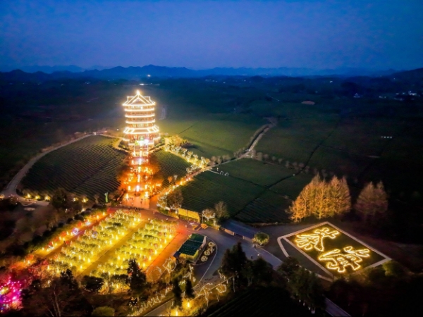 花燈如晝,人流如織。貴州省遵義市湄潭縣永興茶海里,綴珠燈、屏風燈、兔兒燈等,各類花燈精巧絕倫,道路兩旁的樹木也穿上了節(jié)日的盛裝,披上了五彩斑斕的彩燈,把茶海點綴得絢麗多姿。(貴州省遵義市湄潭縣紀委監(jiān)委供 黃俊 攝)
