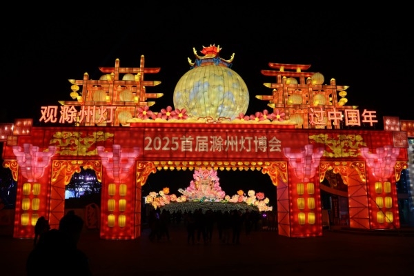 張燈結彩迎新春,燈光璀璨映亭城。以“燈耀花博,醉美亭城”為主題的首屆滁州燈博會正式亮相。滿園流光溢彩,吸引眾多市民游客前來觀景賞燈。(安徽省滁州市瑯琊區(qū)紀委監(jiān)委供 洪揚 攝)