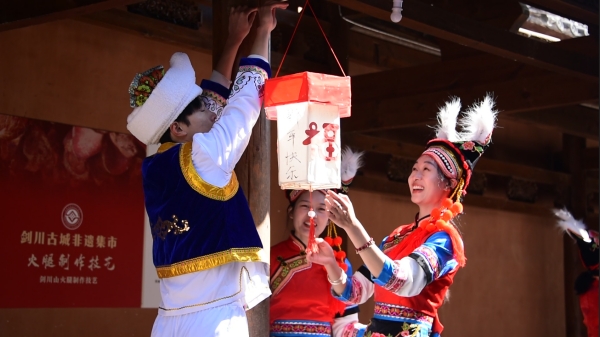 劍川古鎮(zhèn)的大街小巷上,一盞盞寓意吉祥喜慶的純手工繪制燈籠高高掛起,給周邊的群眾和游客們帶來耳目一新的觀燈體驗。(云南省大理州劍川縣紀委監(jiān)委供 段滌暇 攝)