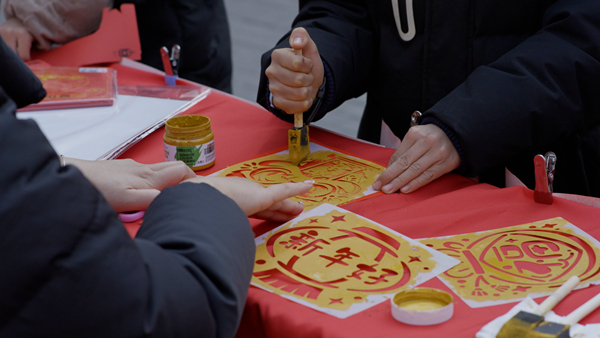 江蘇省昆山市充分挖掘非遺資源,為在昆過年的市民、游客準備了非遺賀新春系列活動,讓大家在濃濃的年味和濃厚的傳統文化氣息中一起過年。圖為小朋友在張浦鎮周巷社區活動現場體驗拓印。(江蘇省昆山市紀委監委供周人杰攝)