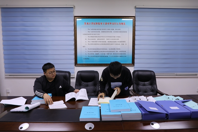 黑龍江省湯原縣紀委監委集中攻堅群眾反映強烈的農村集體“三資”管理、招投標領域、教育、醫療社保和政務服務效能等民生痛點難點,用心用情解決群眾“急難愁盼”。圖為該縣紀檢監察干部在查閱農村集體“三資”問題臺賬。(黑龍江省湯原縣紀委監委 逯野 攝)