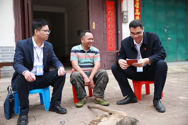 廣西壯族自治區崇左市紀委監委綜合運用協作區工作機制,建立“室組地”貫通、“組組”聯動、“室組”“室地”有效銜接等模式,助推基層監督提質增效。圖為該市紀檢監察干部在林區一線向林農了解政策落實情況。(廣西壯族自治區崇左市紀委監委 黎衛日 攝)
