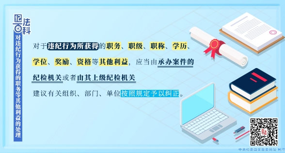 《中國共產(chǎn)黨紀(jì)律處分條例》第四十三條規(guī)定:對(duì)于違紀(jì)行為所獲得的職務(wù)、職級(jí)、職稱、學(xué)歷、學(xué)位、獎(jiǎng)勵(lì)、資格等其他利益,應(yīng)當(dāng)由承辦案件的紀(jì)檢機(jī)關(guān)或者由其上級(jí)紀(jì)檢機(jī)關(guān)建議有關(guān)組織、部門、單位按照規(guī)定予以糾正。