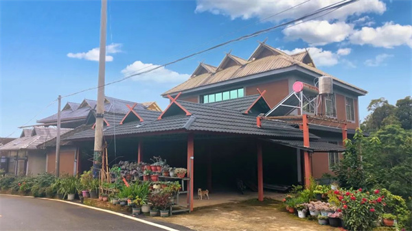 與青山相伴,一條筆直寬敞的柏油路延伸到村內,錯落有致的農家小院,掩映在一叢叢綠植之間,村莊盡顯溫馨、祥和……這是景洪市勐龍鎮勐宋村委會曼加坡坎村村民在新家園開啟新生活的景象。
