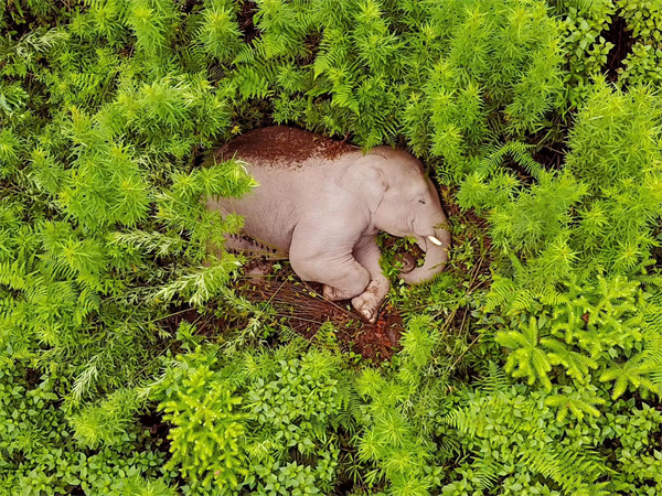 西雙版納是亞洲象的主要棲息地。一只野象在陽光輕撫下沉沉睡去,寧靜祥和的畫面令人動容。